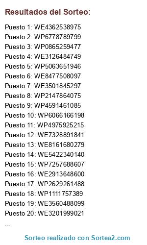 Este sorteo ha sido certificado por Sortea2. Sortea2 garantiza que: