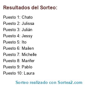 Lista de participantes: Laura, Julissa, Julián, Pablo, Jessy, Marifer, Ito, Mailen, Michelle, Chato.