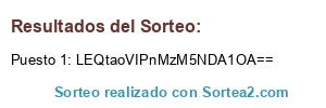 Este sorteo ha sido certificado por Sortea2. Sortea2 garantiza que: