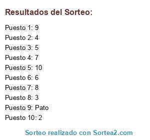 Lista de participantes: Pato, 2, 3, 4, 5, 6, 7, 8, 9, 10.