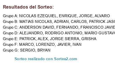 Lista de participantes: RODRIGO ANTONIO, ANDERSON DAVID, RAFAEL, JORGE SIERRA, NICOLAS EZEQUIEL, PATRICK, ENRIQUE, MATIAS NICOLAS, MARIO GUSTAVO, FERNANDO, ALEJANDRO, CARLOS, SERGIO, ALEX, PATRICK JASON, FRANCISCO JAVIER, JAVIER, SANTOS, ALVARO, LORENZO, IVAN, ADRIAN, JORGE, GRISHA, BRYAN, MARCO.