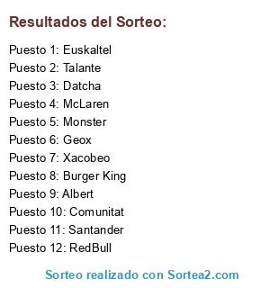 Resultados del sorteo: