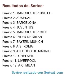 Lista de participantes: BARCELONA, MANCHESTER UNITED, LIVERPOOL, ARSENAL, CHELSEA, INTER DE MILAN, ATLETICO DE MADRID, MANCHESTER CITY, A.C. MILAN, A.S. ROMA, JUVENTUS, BAYERN MUNICH.