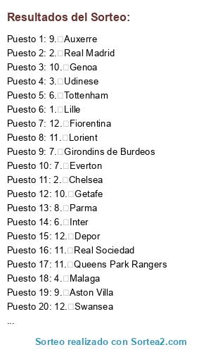 Resultados del sorteo: