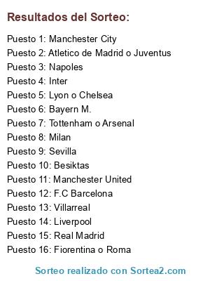 Resultados del sorteo: