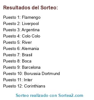 Lista de participantes: Barcelona, Borussia Dortmund, Corinthians, Liverpool, Inter, Flamengo, Boca, River, Colo Colo, Argentina, Alemania, Brasil.