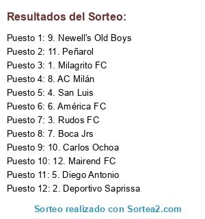 Resultados del sorteo: