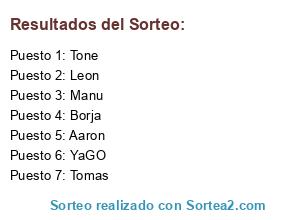 Lista de participantes: Tomas, Manu, Tone, Leon, YaGO, Aaron, Borja.