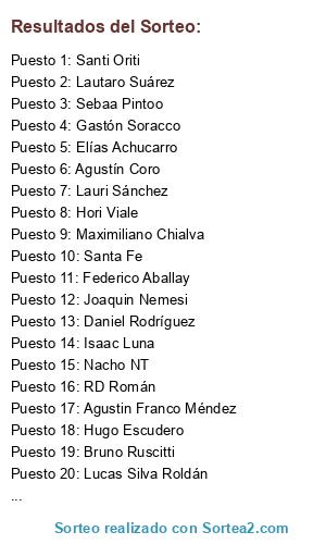 Lista de participantes: Elías Achucarro, Bruno Ruscitti, Santi Oriti, Tapia Ampu Eber, Mauro Romero, Hori Viale, Nicolás Carabajal, Joaquin Nemesi, Gastón Soracco, Lautaro Suárez, Nacho Dovis, Matii Doviis, Nacho NT, Alejandro Ayala, Lauri Sánchez, Sebaa Pintoo, Daniel Rodríguez, Hugo Escudero, Maximiliano Chialva, Dani Coronel, Isaac Luna, Agustin Franco Méndez, Lautaro Corbari, Matías Kachuk, Ariel Bustos, Lucas Silva Roldán, Agustín Coro, Fede Carbone, Esteban Megaliga, Wilson Rodríguez, Federico Aballay, Santa Fe, RD Román.