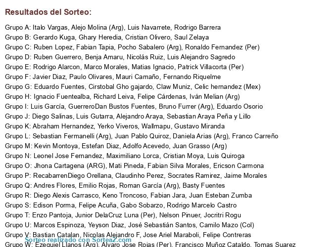 Lista de participantes: Marco Morales, Jose Ariel Maraboli, Gabo Sobarzo, Mati Pineda, Francisco Muñoz Cataldo, Nicolas Alejandro F, Maximiliano Lorca, Cristian Moya, Saul Zelaya, Diego Salinas, Rodrigo Marcelo Castro, Paulo Olivares, Kevin Montoya, Estefan Diaz, Bruno Furrer (Arg), Seba Piñeiro (Arg), Sebastian Fermanelli (Arg), Ericson Carmona, Matias Cavieres, José Sebastián Santos, Pablo Montecinos, Claudinho Perez, Abraham Hernandez, Alejo Molina (Arg), Javier Diaz, David Troncoso Vasquez, Fabian Tapia, Ignacio Fuentealba, Rodrigo Diaz, Marcos Espinoza, Bastian Catalan, Diego Valdes, Matias Ignacio, Damian Ranaudo (Arg), Luis Santibañez, Benja Amaru, Tomas Suarez, Carlos Alberto Macaya Asencio, Fabian Silva, Alejandro Araya, Nelson Pinuer, Cristian Barraza, Cristian Olivero, Jhona Cartagena (ARG), Ronaldo Fernandez (Per), Claw Muniz, Richard Leiva, Yeyson Diaz, Nicolas Parra, Lucas Farnos (Arg), Roman García (Arg), Jhonatan Salazar (Per), Pedro Angeles (Per), Rey Molina (Arg), Jorge Castro Mena, Daniela Arias (Arg), Ciros Atineos, Pocho Sabalero (Arg), Emilio Rojas, Jaime Morales, Lautaro Raris (Arg), Iván Melian (Arg), Eduardo Fuentes, Fabian Aguirre, Gustavo Miranda, Alvaro Jose Rojas (Per), Cindy Espinoza (Ecu), Gabi Oro (Arg), Camilo Mazo (Col), Felipe Esteban Oxa Villarroel, Santiago Salés Gonzales (Per), Jocritri Rogu, Sebastian Araya Peña y Lillo, Luis Alejandro Sagredo, Pipe Lagos Rivera, Franco Carreño, Cirstobal Gho gajardo, Yerko Viveros, Rodrigo Barrera, Italo Vargas, Juan Esteban Zumba, Ruben Lopez, RecabarrenDiego Orellana, Cesarsamus Corser Famisis, Rodrigo Alarcon, Basty Fuentes, Gerardo Kuga, Ghary Heredia, Diego Alexis Carrasco, Junior DelaCruz Luna (Per), John Alexis Riveros, Adolfo Acevedo, Juan barber, Celic hernandez (Mex), Socrates Ramirez, Ruben Guerrero, Keno Troncoso, Alberto Reyes, Juan Grasso (Arg), Edison Porma, Patrick Villacorta (Per), Juan Pablo Quiroz, Camilo Aguilera, Felipe Pizarro, Héctor Nicolas, Nicolás Ruiz, Ezequiel Llanos (Arg), Fernando Riquelme, Wallmapu, Fabian Jara, GuerreroDan Bustos Fuentes, Luis Gutarra, Felipe Acuña, Renato Garabito, Leonel Jose Fernandez, Luis Navarrete, Mauri Camaño, Eduardo Osorio, Enzo Pantoja, Felipe Contreras, Luis Orrego, Mairon Yamil, Luis García, Luis Quiroga, Andres Flores, Carlos Campillay, Fabian Silva Morales, Felipe Cárdenas.