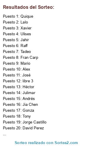 Accesibilidad del sorteo: El sorteo es público. Todo el mundo podrá acceder a él desde el listado de sorteos guardados.