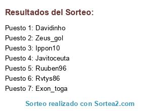 Lista de participantes: Ippon10, Davidinho, Rvtys86, Exon_toga, Zeus_gol, Javitoceuta, Ruuben96.
