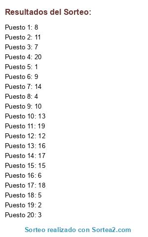 Lista de participantes: 1, 2, 3, 4, 5, 6, 7, 8, 9, 10, 11, 12, 13, 14, 15, 16, 17, 18, 19, 20.