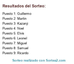 Lista de participantes: Elvis, Martin, Noel, Kazanji, Samuel, Guillermo, Ricardo, Miguel, Leonel.