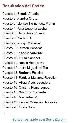 Lista de participantes: Sandra Gallardo Menor, Luisa Muñoz Guijo, Maria Salud Alarcon Navarro, Julia Eugenia Lecha, Patricia Martinez Rosellon, Barbara Espelta, Ruth Gines, Zaida SD, Iluminada Fernandez Alfonso, Carmilla Mircalla, Luisa Sanchez, Teresa Mendoza Velez, Mari Carmen Santiago, Laura Rey Figueiras, Beatriz Amado, Norma Jerez, Cintia Tapia, Rosa Maria Sierra Alvarez, Rosa Rosa, Hortensia Collantes, Jose Julian Escudero, Nuria Sanz, Teresa Tornero Rubio, Julian Sanz Muñoz, Socorrito Valverde, Maria Jose Rosello, Xandra Orgaz, Ocativo Escudero Rodriguez, Sylvia Gonzalez Peña, Amparo Sahagun, Julio Sanz, Leticia Monedero Navarro, Llanos Espinosa, Sara Gutierrez Fndz, Leandro Valverde, Rafa Merino, Josefina Fernandez, Adela Gonzales Flotats, Noelia Alonso Pa, Asun Gomez, Ana Maria Espejo Toro, Noelia Maestro, Carmen Posadas, Marta So, Ana Trufula, Ana Toro, Maribelyandres Fernandez Sarrion, Lidia Aguilar, Laura Gándara Nogués, Rodgz Mariesieii, Rosa Plaza Iglesias, Montse Fernandez Martin, Sonia Garcia Pastor, Patricia Martinez, Avelina Florencia Soto Ventura, Pilar Galan Fernandez, Concepcion Matias Simarro, Adela Alberola Mahiques, Felipe Garcia, Jasmine Sarra Montes, Terhe Margoth Metalmoon Jo, Esther Molina Torrente, Jairo Miguel del Rio, Mariana Vera Palma, Cristina Plana Lopez, Isabel Sollai, Ana Maria Gonzalez Perez, Mari Carmen Gonzalez Gonzalez, Maria Diaz Perez, Luz Montero, Mercedes Vg, Marisa Fornieles, Alicia Vives Escudero, .