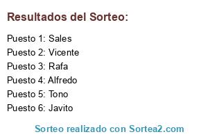 Lista de participantes: Vicente, Tono, Sales, Javito, Alfredo, Rafa.