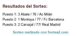Lista de participantes: 1 Montoya / 77 / Fc Barcelona, 2 Carvajal / 77/ Real Madrid, 3 Abate / 76 / Ac Milán.