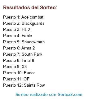 Lista de participantes: Ace combat, Arma 2, Fable, Final 8, HL 2, OF, Saints Row, Shadowman, X3, Blackguards, Eador, South Park.