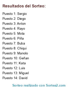Resultados del sorteo: