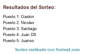 Lista de participantes: Juan DS, Juanso, Gaston, Nicolas, Santiago.