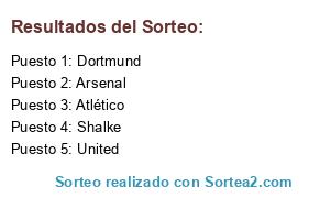 Lista de participantes: United, Arsenal, Atlético, Dortmund, Shalke.