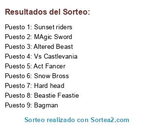 Lista de participantes: Altered Beast, Snow Bross, Act Fancer, Sunset riders(2 participaciones), Bagman, Beastie Feastie, MAgic Sword, Vs Castlevania, Hard head.