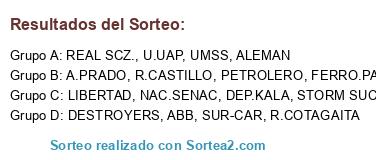 Lista de participantes: REAL SCZ., DESTROYERS, R.CASTILLO, ABB, A.PRADO, UMSS, R.COTAGAITA, FERRO.PALMEIRAS, SUR-CAR, DEP.KALA, NAC.SENAC, PETROLERO, ALEMAN, STORM SUCRE, U.UAP, LIBERTAD.
