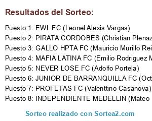 Resultados del sorteo: