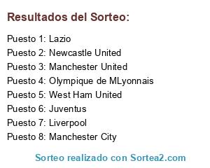 Lista de participantes: Lazio, Newcastle United, Manchester United, Liverpool, Olympique de MLyonnais, Manchester City, West Ham United, Juventus.