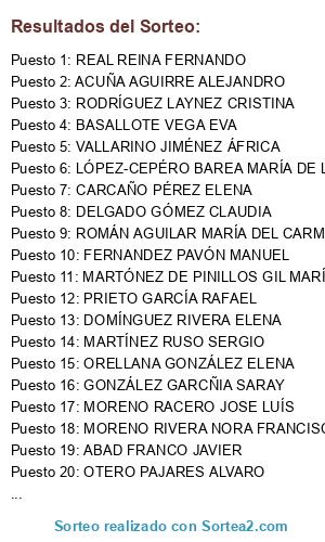 - Puesto 21: MARTÍNEZ PACHECO MARÍA JOSE