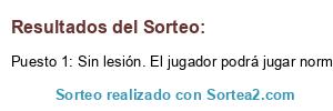 - plea: Sin lesión. El jugador podrá jugar normalmente la siguiente semana.