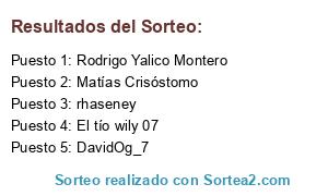 Lista de participantes: Rodrigo Yalico Montero, rhaseney, DavidOg_7, Matías Crisóstomo, El tío wily 07.