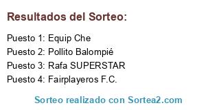 Lista de participantes: Pollito Balompié, Fairplayeros F.C., Rafa SUPERSTAR, Equip Che.