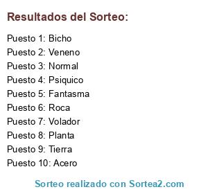 Lista de participantes: Normal, Veneno, Volador, Fantasma, Planta, Bicho, Tierra, Acero, Roca, Psiquico.