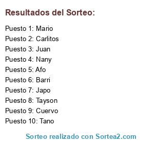 Lista de participantes: Tano, Juan, Carlitos, Afo, Tayson, Japo, Nany, Barri, Cuervo, Mario.