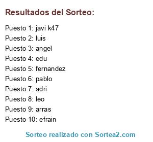 Resultados del sorteo:
