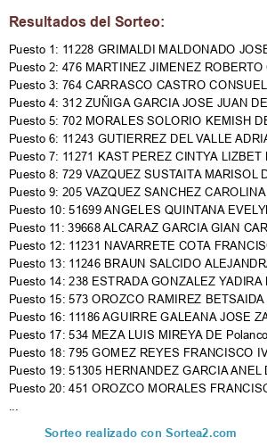 - Puesto 27: 11089 GIRON ESPINOZA IVAN ALEJANDRO DE Polanco