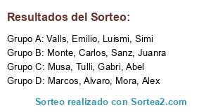 Lista de participantes: Alex, Alvaro, Carlos, Valls, Sanz, Mora, Luismi, Gabri, Abel, Juanra, Tulli, Musa, Monte, Simi, Emilio, Marcos.