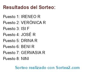Lista de participantes: ISI F, BENI R, DRINA R, NINI, JOSÉ R, IRENEO R, GERVASIA R, VERÓNICA R.