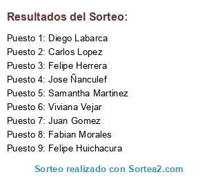 Lista de participantes: Felipe Huichacura, Carlos Lopez, Juan Gomez, Samantha Martinez, Felipe Herrera, Jose Ñanculef, Viviana Vejar, Diego Labarca, Fabian Morales.