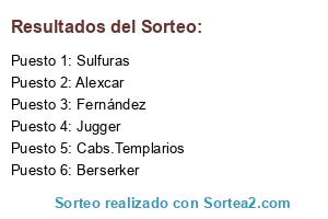Lista de participantes: Sulfuras, Jugger, Berserker, Alexcar, Cabs.Templarios, Fernández.