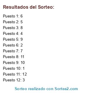 Resultados del sorteo: