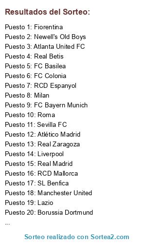 Lista de participantes: Inter de Milán, Real Madrid, Real Betis, FC Colonia, Liverpool, Borussia Dortmund, Fiorentina, Atlético Madrid, FC Barcelona, Manchester United, SL Benfica, UD Las Palmas, FC Bayern Munich, Olympique de Lyon, Lazio, RCD Mallorca, Forest Green Rovers, Newell's Old Boys, Olympique de Marsella, FC St. Pauli, Milan, Real Zaragoza, Ajax, Roma, Atlanta United FC, FC Basilea, Paris Saint-Germain, Manchester City, Sevilla FC, RCD Espanyol.