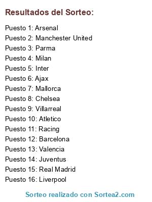 Lista de participantes: Inter , Arsenal , Ajax , Atletico , Chelsea , Parma , Racing , Valencia , Juventus , Barcelona , Real Madrid , Manchester United , Milan , Liverpool , Villarreal , Mallorca.