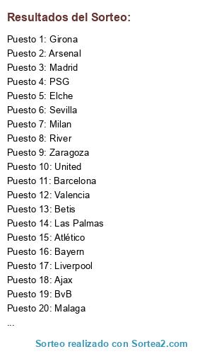Resultados del sorteo: