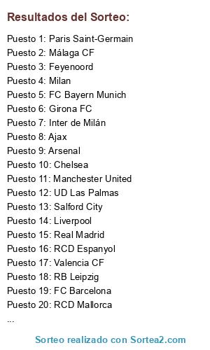 Resultados del sorteo: