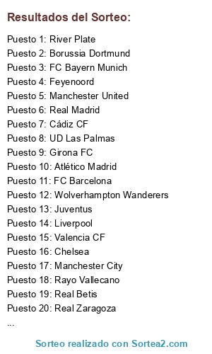 Lista de participantes: Inter de Milán, PSG, Wolves, FC Bayern Munich, Borussia Dortmund, Valencia CF, RCD Mallorca, Newcastle United, Manchester United, Málaga CF, Chapecoense, Levante UD, Liverpool, Chelsea, Manchester City, Real Madrid, RB Leipzig, Rayo Vallecano, Milan, New York Red Bulls, FC Barcelona, RCD Espanyol, Sevilla FC, Atlético de Madrid.