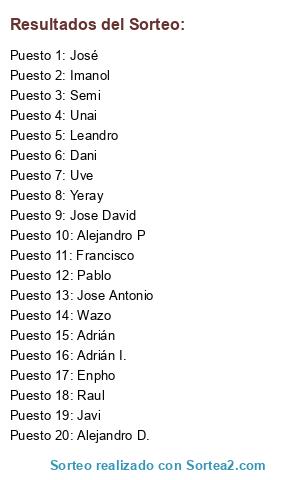 Lista de participantes: Alejandro D., Imanol, Alejandro P, Pablo, José, Jose David, Unai, Yeray, Adrián, Semi, Leandro, Enpho, Javi, Francisco, Raul, Adrián I., Jose Antonio, Wazo, Uve, Dani.