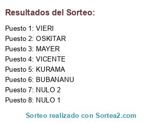 Lista de participantes: BUBANANU, KURAMA, MAYER, VIERI, VICENTE, OSKITAR, PITUFO, KOKOROKO.