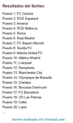 Lista de participantes: Manchester United, Borussia Dortmund, Real Madrid, Inter de Milán, FC Colonia, Ajax, Atlanta United FC, FC Barcelona, Roma, Lazio, Real Zaragoza, Milan, FC Bayern Munich, Celtic, RCD Espanyol, RCD Mallorca, Atlético Madrid, Real Betis, Arsenal, UD Las Palmas, Paris Saint-Germain, Manchester City, Fiorentina, Rayo Vallecano, Sevilla FC, Olympique de Marsella, Sampdoria, Valencia CF, Liverpool, Chelsea.